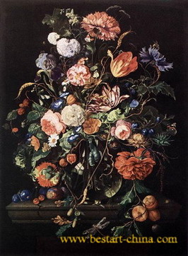 Flowers in Glass and Fruits