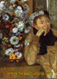 Edgar Degas, woman seated beside a vase of flowers(detail),1865