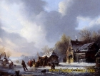 A Winter Landscape With Skaters On A Frozen waterway