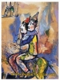 Two clowns too horses