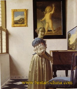A Young Woman Standing at a Virginal