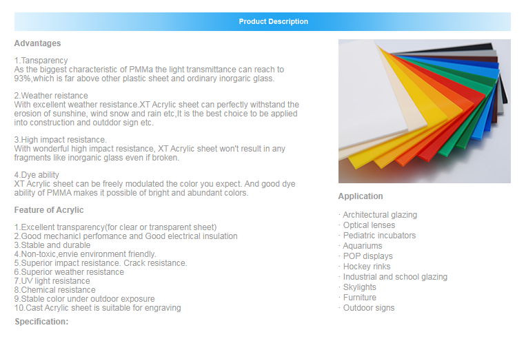 Raw material:100% Virgin PMMA